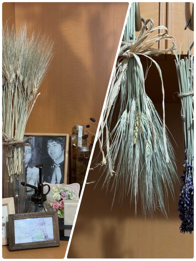 こちらでは 麦畑は 無いので 珍しくって 飾って 楽しんでます😆