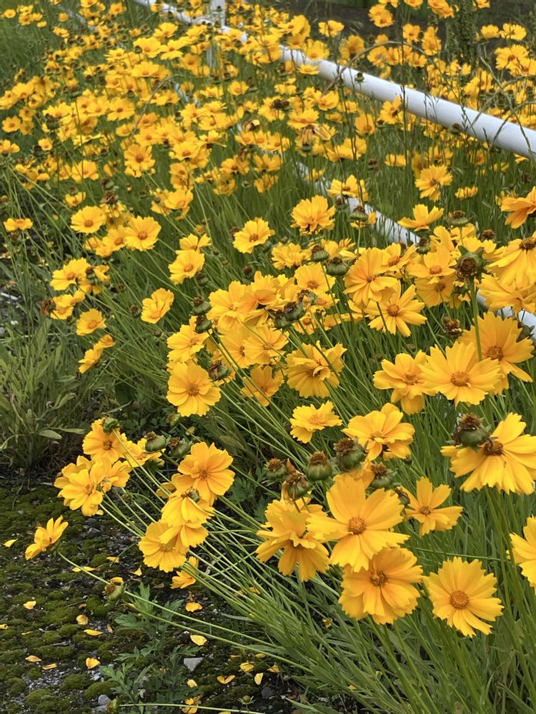 鮮やかな黄色い花が元気に咲いています。道路の中央分離帯や道路脇に1km強気がついたら黄色で覆われていました。特定外来生物。