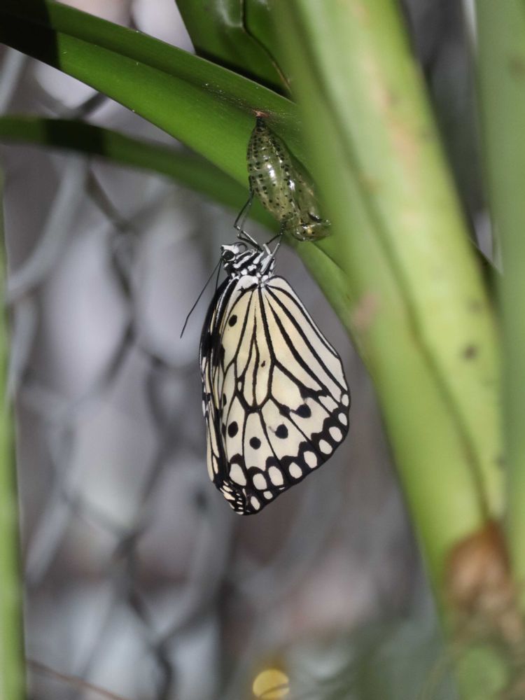 3️⃣庭でオオゴマダラの羽化が