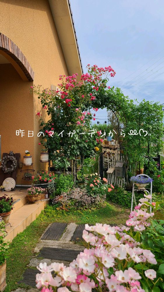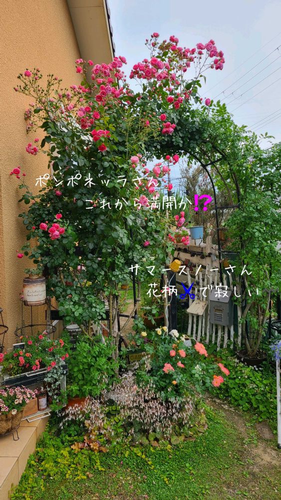 アーチ右側のサマースノーさんのお花も終わり、左側のポンポネッラさんが今から満開を迎えようとしていますჱ̒⸝⸝•̀֊•́⸝⸝)