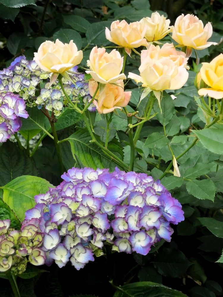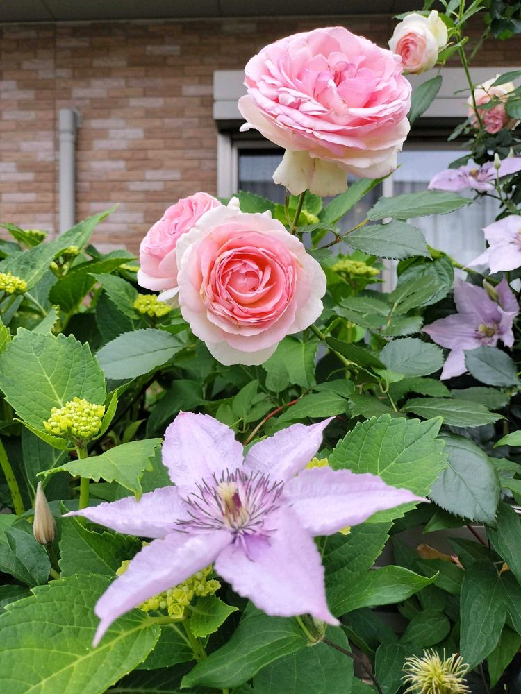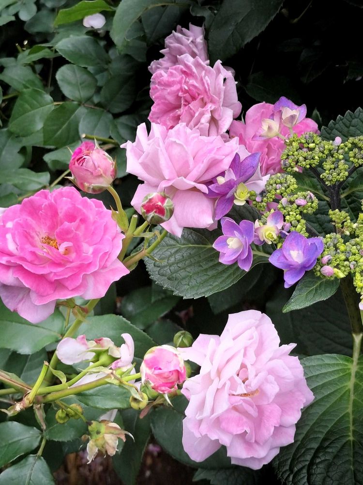 素晴らしい薔薇と紫陽花のコラボですね😻💞