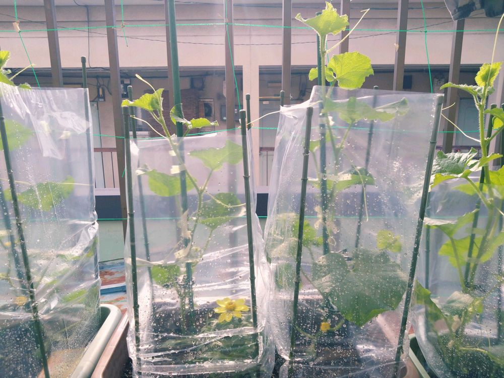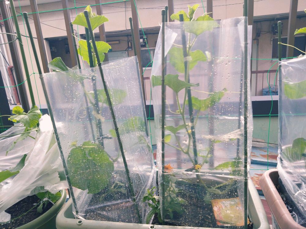 キュウリとメロン定植から約2週間たちました。