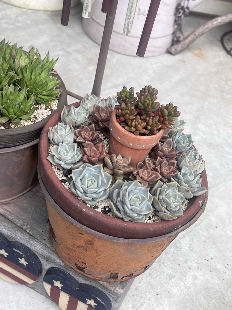 腰痛はまだ少しありますがじっとしてるのも良くないので花友さんに教えてもらったストレッチをしたり多肉の寄せ植えを仕立て直したりしました😅