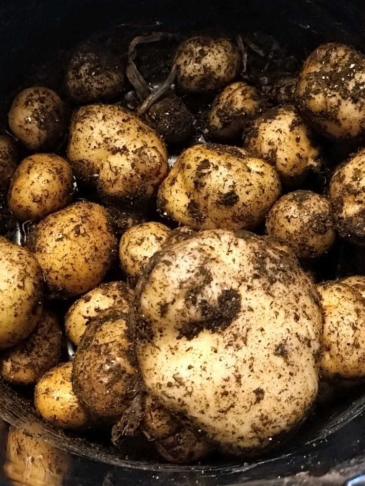 3枚目はじゃが芋なんだけど食用で購入したんだけど芽が出たので植えてみたら試し掘りの段階だけどこんだけ付いてた!