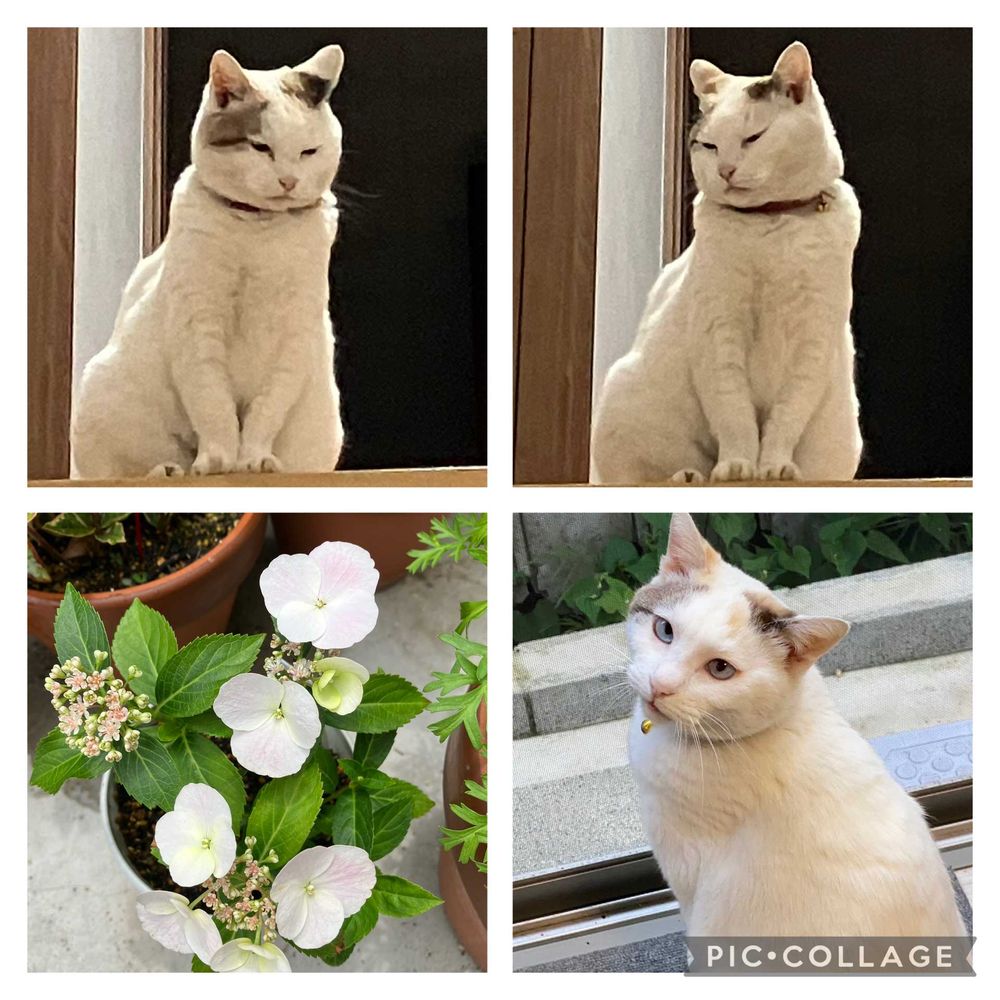 紫陽花『ブライダルシャワー』の優しい色も、ソラちゃん🐱にとても良くお似合いです✨✨