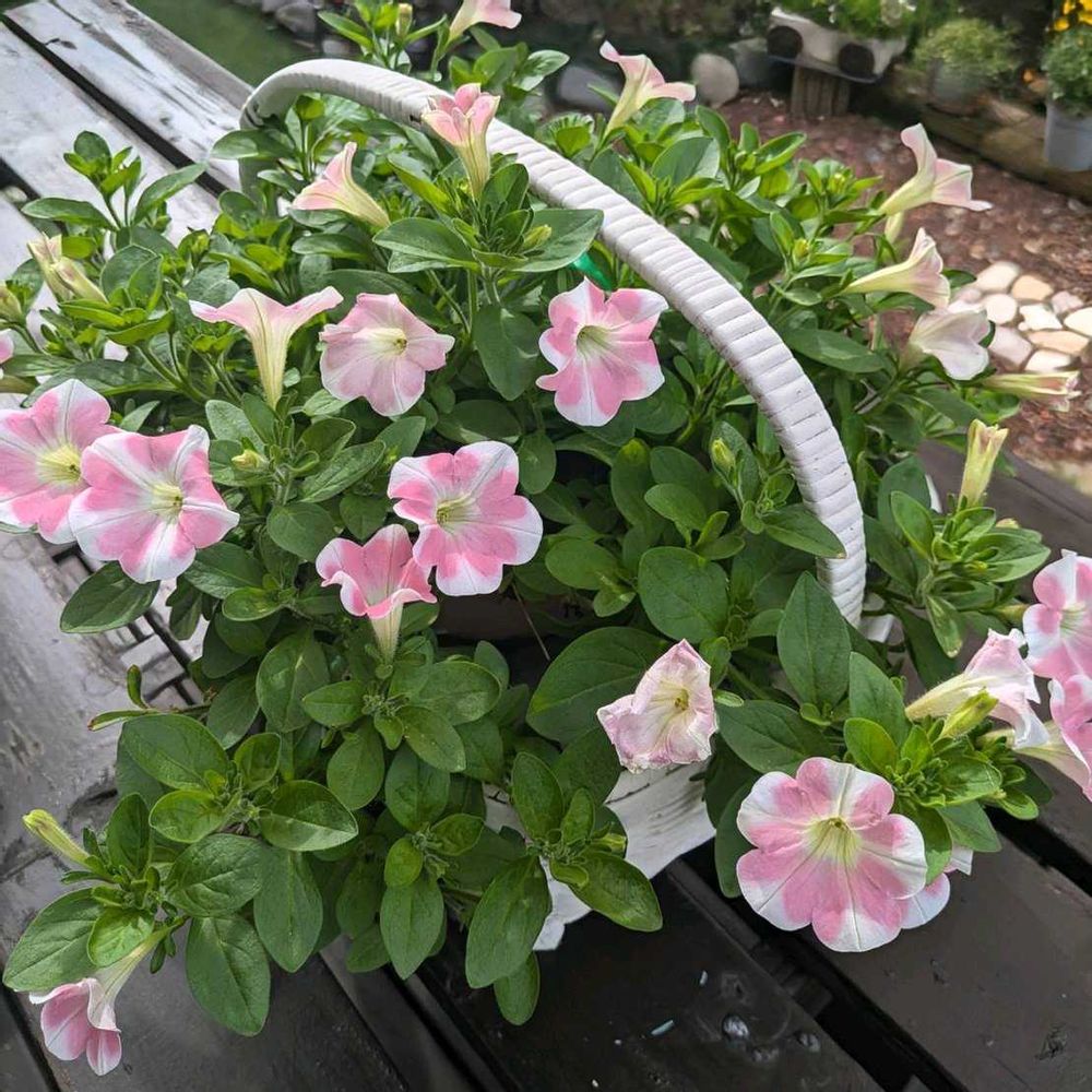 可愛いかごにハートがいっぱい咲きましたね~😊これ、肥料をやらないと白くなるって知ってました?(以前放置してたらハートが消えた🤣)