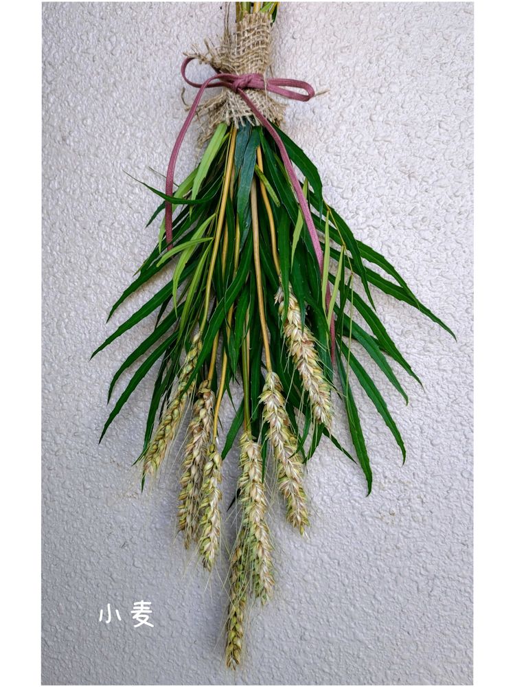 小麦を見かけることはなかなかありませんが、マホニアコンフィーサの葉っぱとで、ナチュラルでこんなに素敵なスワッグになるのですね💚