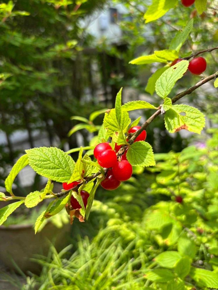 ユスラウメも真っ赤に熟れて綺麗❤️🌿