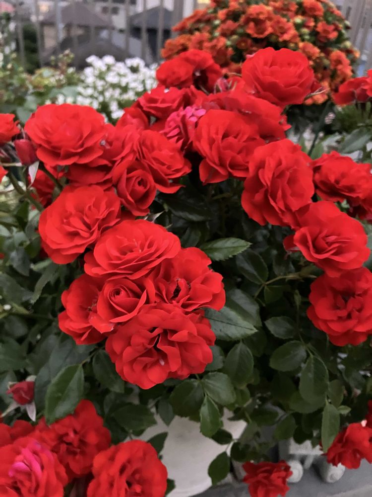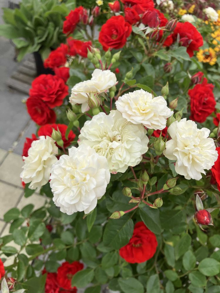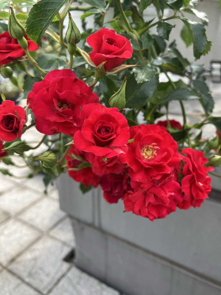 とても強いミニ薔薇ですが、フラワーカーペットローズと同様に這うように枝が広がって咲くので何度も鉢が倒れてしまいました…😰
