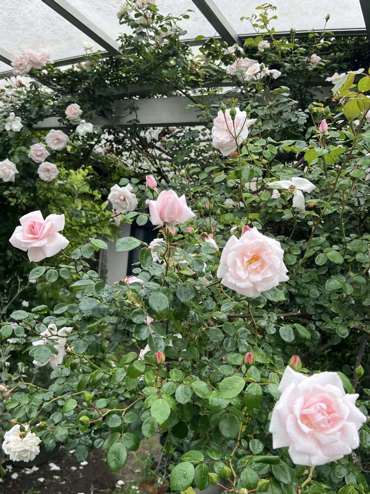 パーゴラに、たくさんの薔薇の美しい花園の様な光景に目が😍になりました