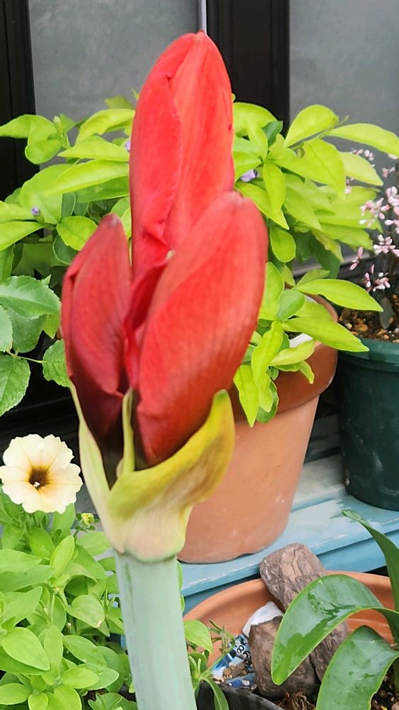 アマリリスが、あともーちょっと。今年は、不調で、唯一、このこが、立派。
