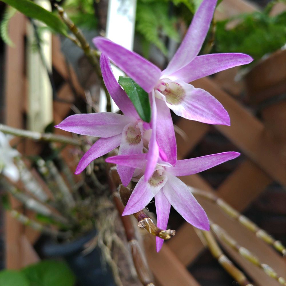 〈地道投稿〉二日前投稿した🫣1️⃣「セッコク 南紀」今日😀こちらの方が生き生きしてます2️⃣師匠からのこちらも頂き品「サツキ」花の柄入り、ちょこっとちょこっと🤨ひとつひとつ花の柄違うのが面白い。曇から雨予報ですが、朝から曇☁️風はずーっと強弱つけ吹いてます。