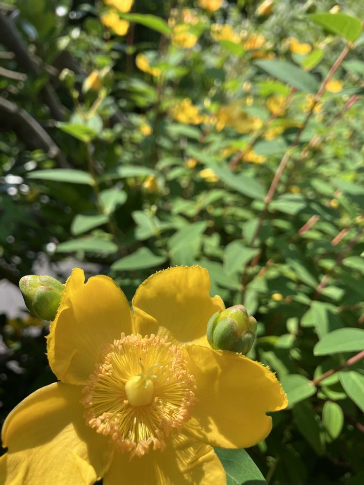 松葉菊の群生過去に何処かで見たけど圧巻の美しさでしたわ😲。ノイバラもバラ特有の派手さは無いが飽きのこない可愛らしさ満載😄。ヒペリカムは昔我が家にもありました😄。街路樹の植え込みにも使われる位強くて美しい植物。懐かしいな😊。
