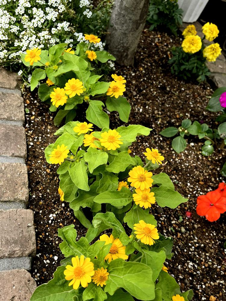 ③ビオラを抜いた花壇に例年と一緒😅メランポジューム🌼を7本植えました🌱🌱10月いっぱいまで頑張ってネ\(*⌒0⌒)♪