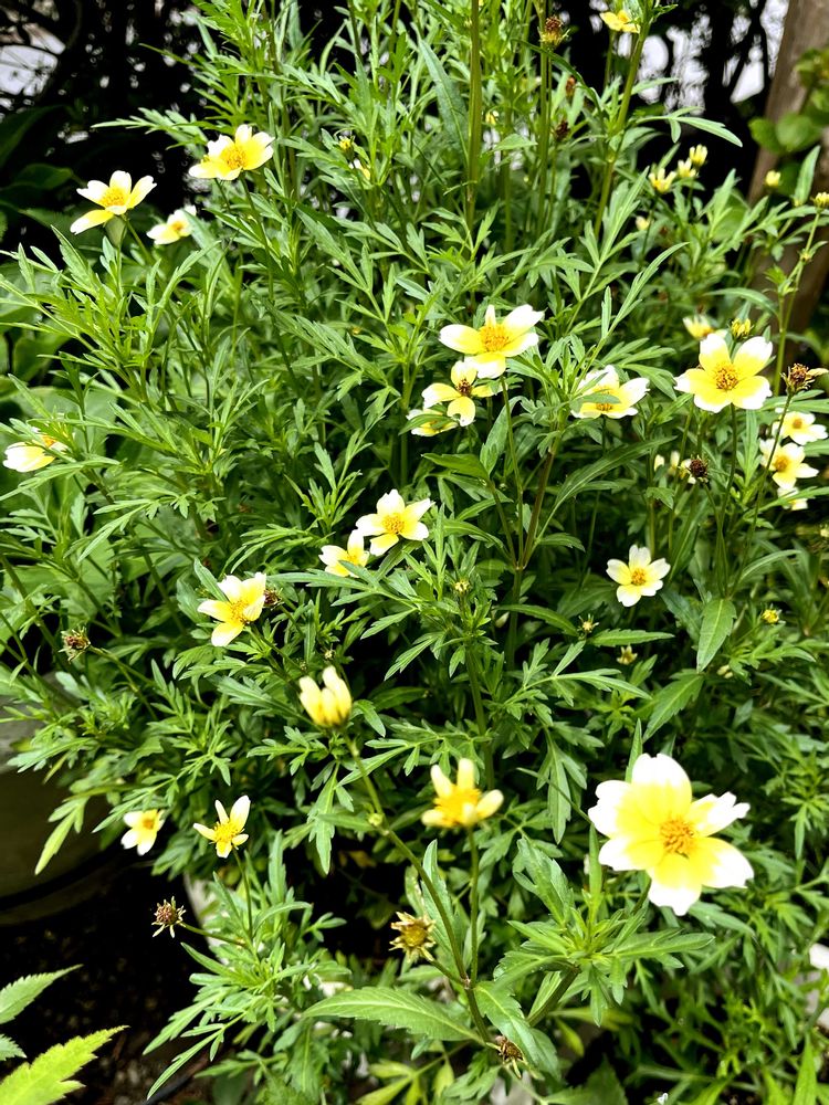 ①植えっぱなしで楽々なイトバハルシャギク🌼黄緑の葉っぱとお花の相性抜群❣️毎年ありがとう🥰