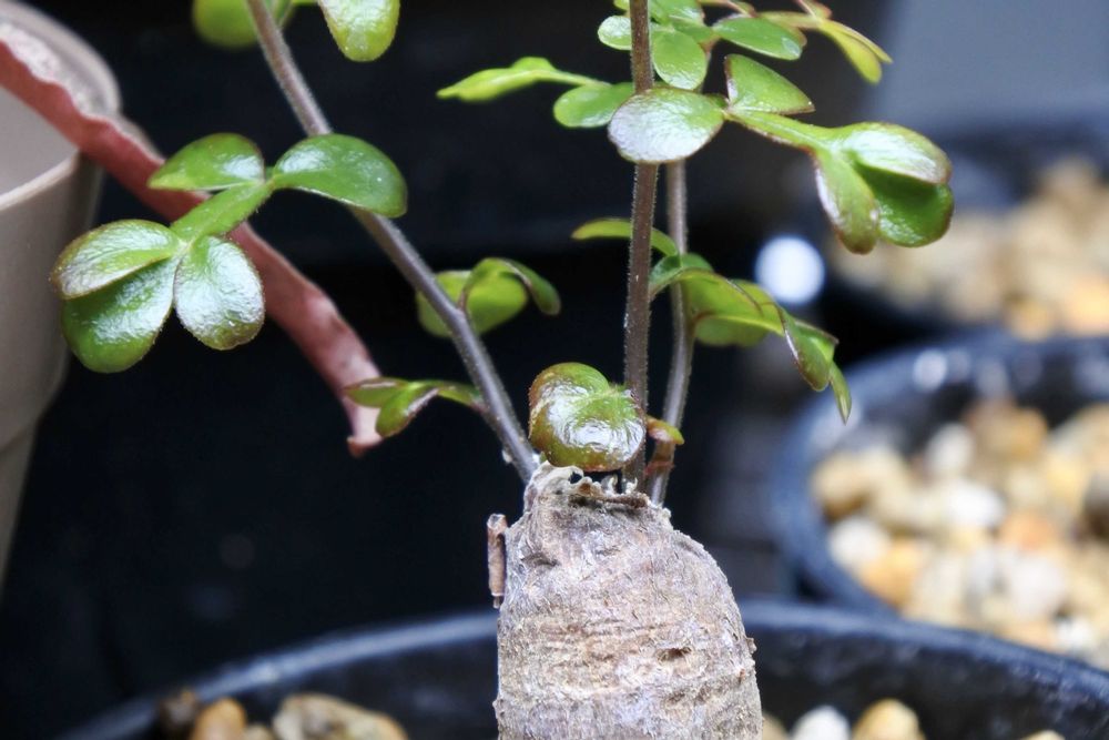 オペルクリカリア・パキプスの根挿し3つが全部発芽し、親木もたくさん葉を出し始めています。