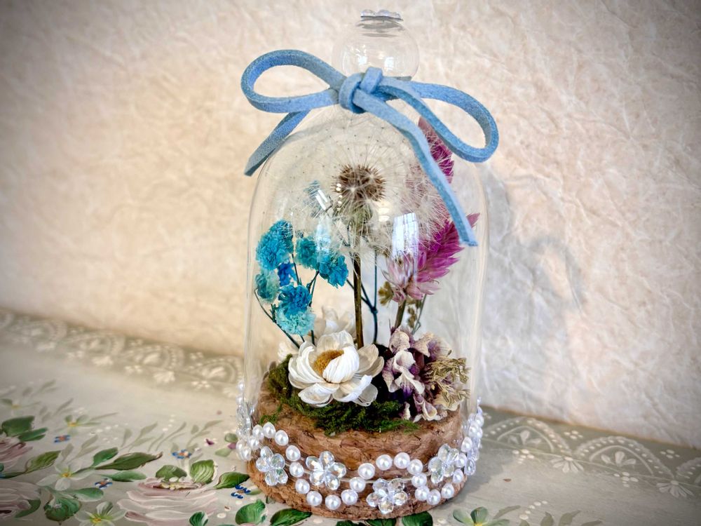 ①ドライフラワーのガラスドーム