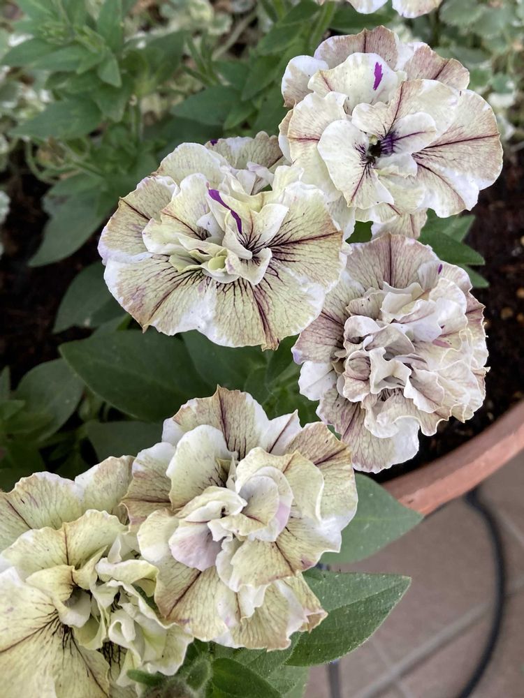 シックな色のペチュニアをお迎えしました。花びらのフリルが可愛い💕