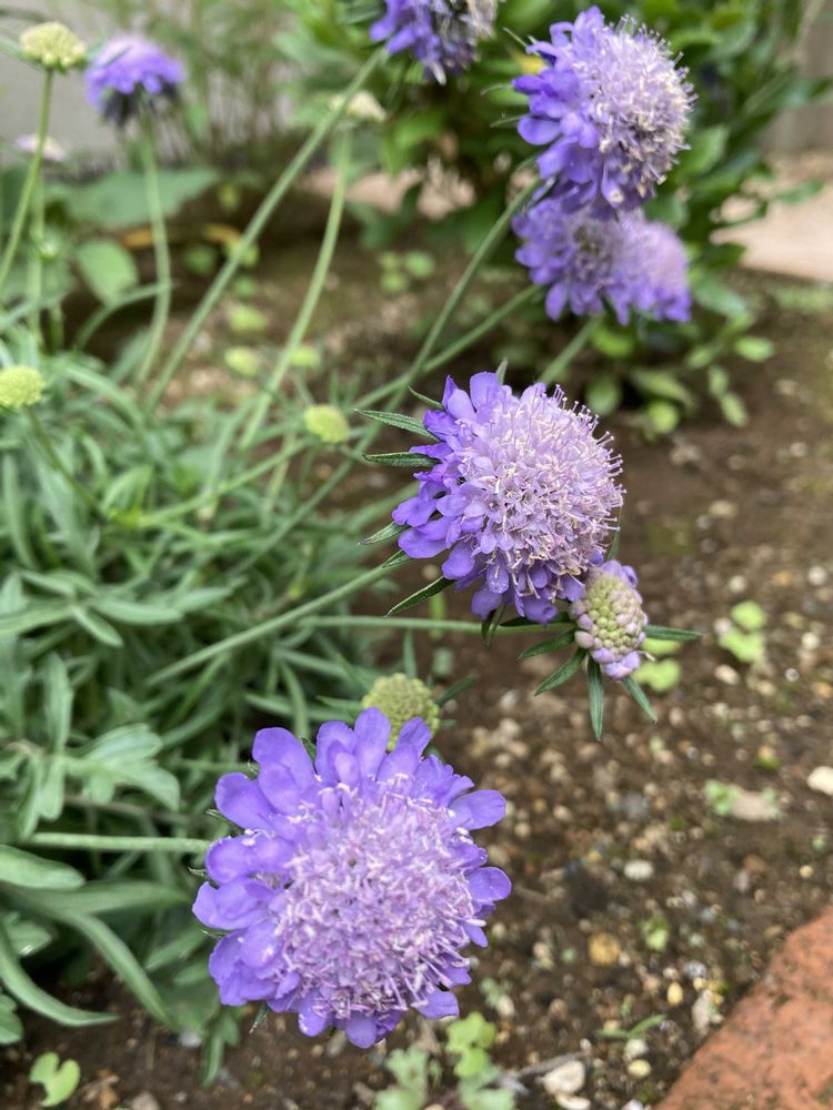 地植えにした2年目の「スカビオサ ピンクッションブルー」🩵💜🩵