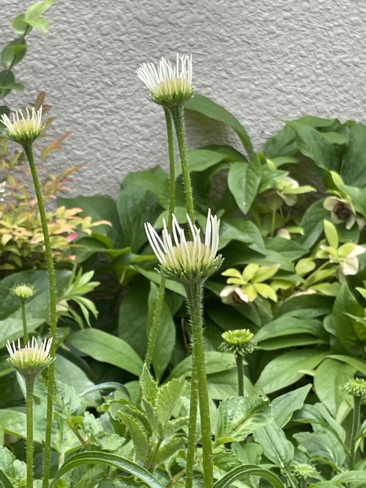 エキナセア真ん中盛り上がり花弁下向きになって来ました