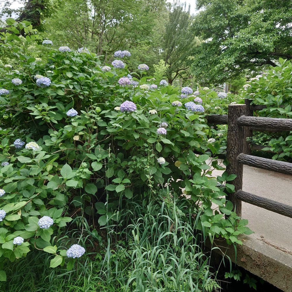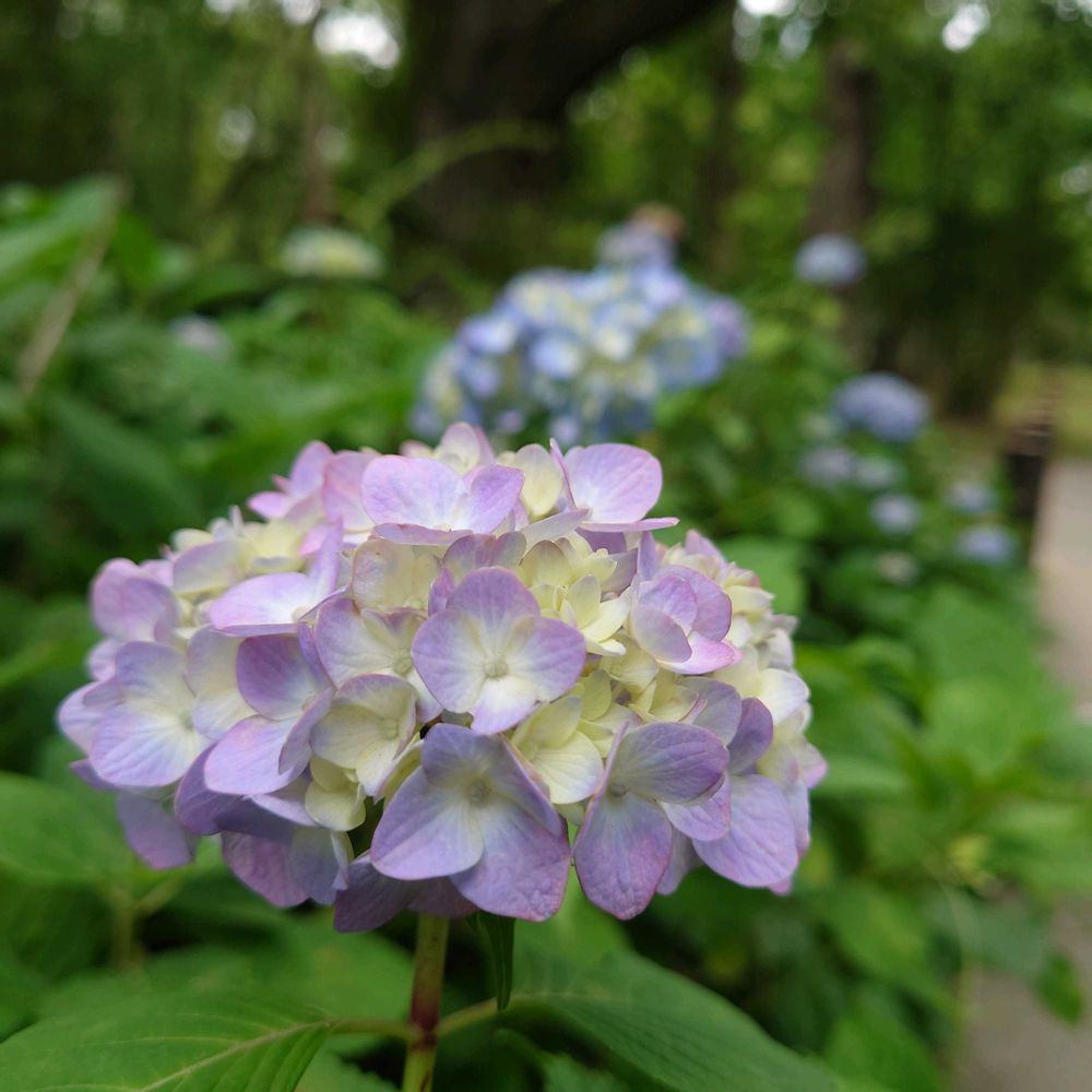 紫陽花が少しずつ咲き始めてます🐌鶴見緑地公園散歩中🐛