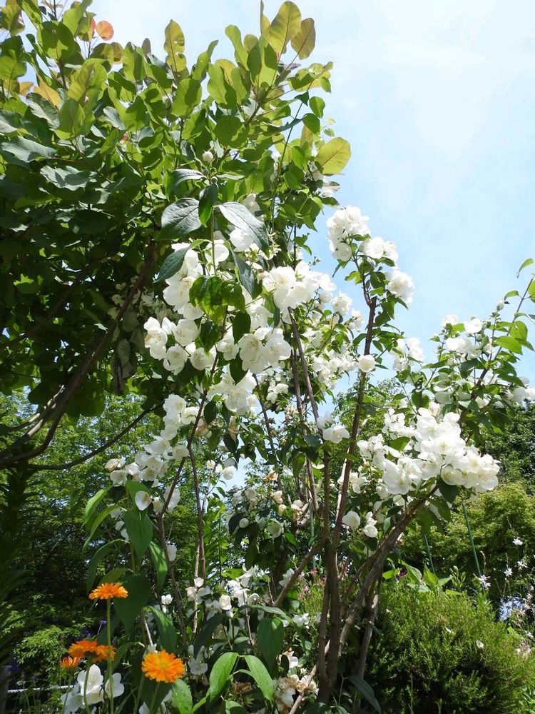 白い花が青空に映える様は本当に綺麗ですね〜庭にあれば良いだろうと思います🤓👌