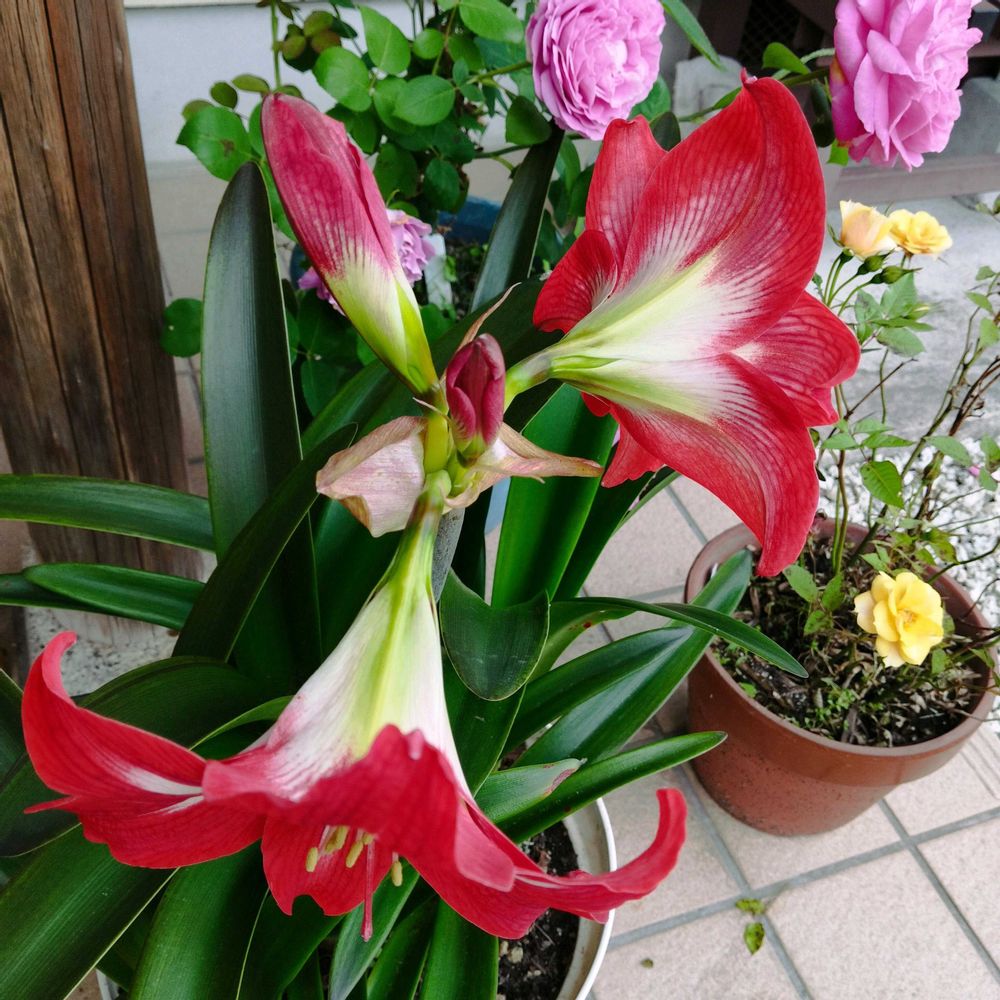 アマリリス🔴冬に二階まで持ち上げて大切にした成果でしょうか? 嬉しい😆