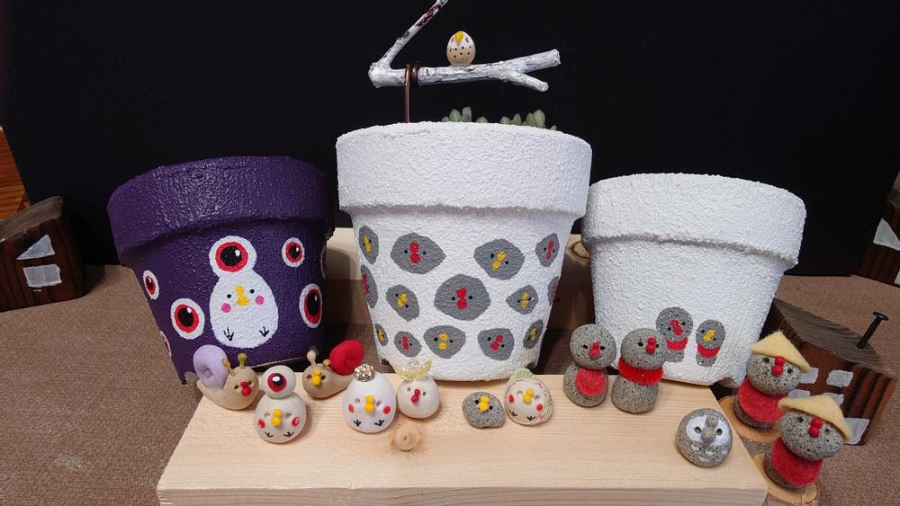鉢の表面の土がかわいたらピータン達を乗せてパチリ📸だよん