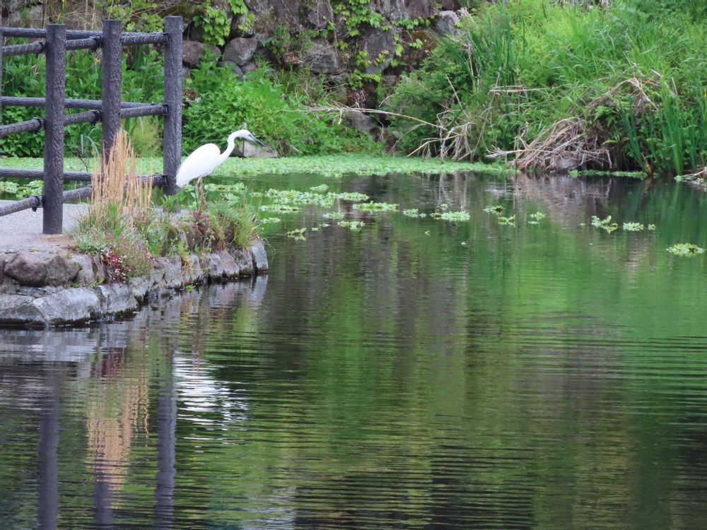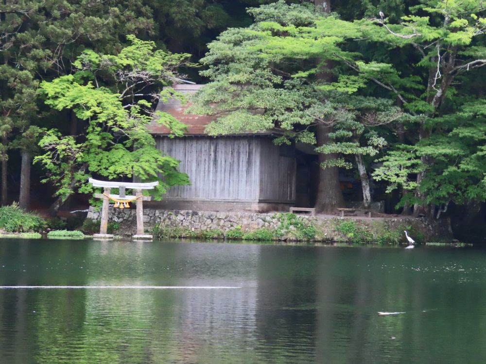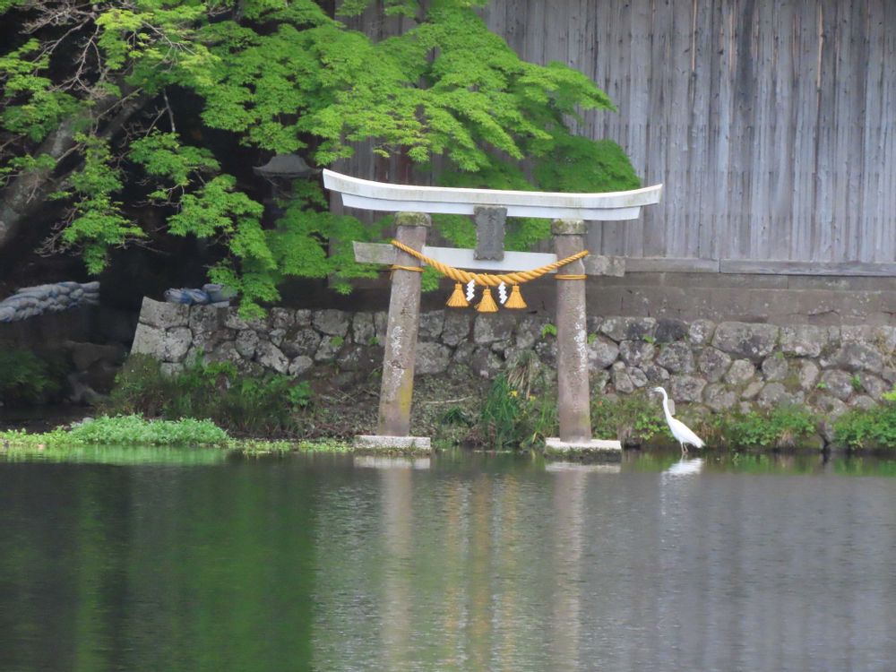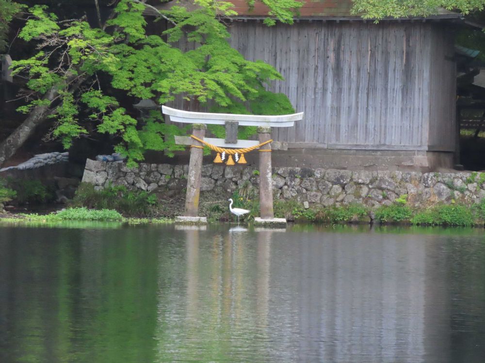 ☆4 鳥居⛩️の向側の湖畔の鷺