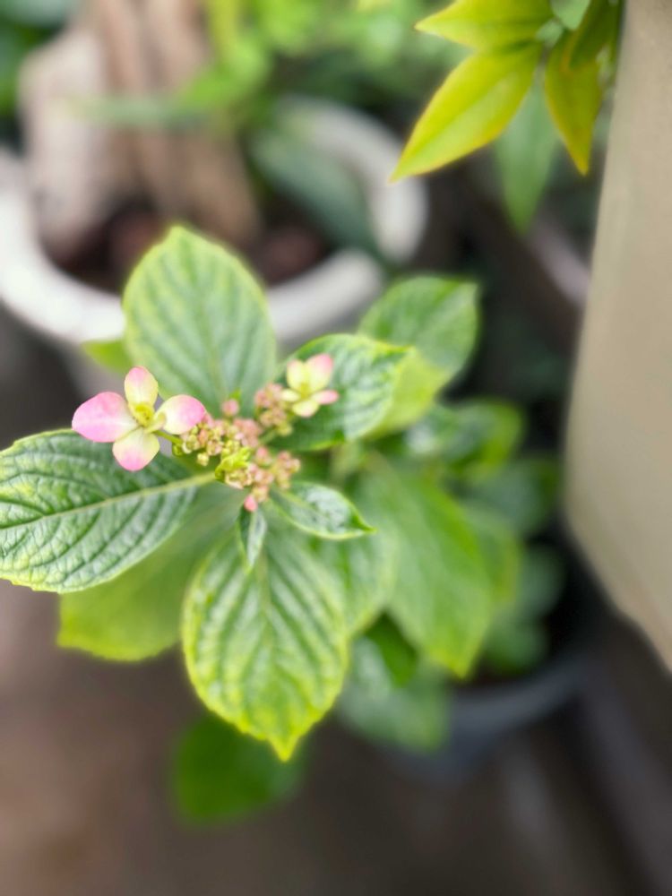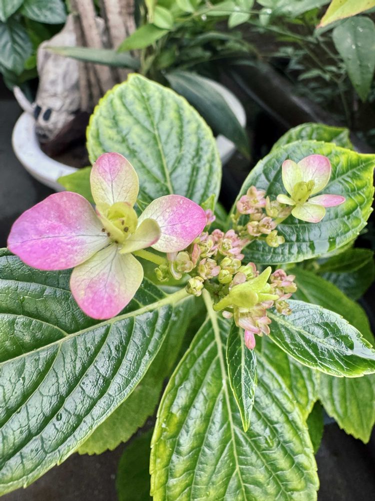 雨上がりに見てみると鉢植えの "紫陽花" が咲きだしてましたꕤ.。