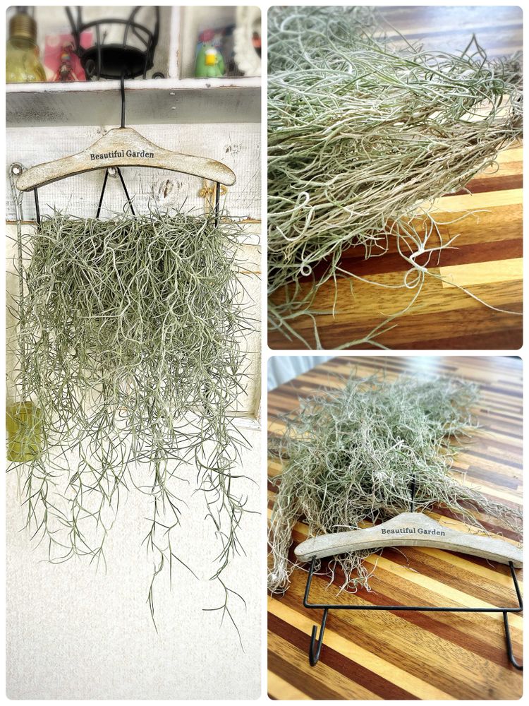 今回は枯れたとこを綺麗にカットして纏めずに昔100キンで購入の小さなハンガーに掛ける事にしました!