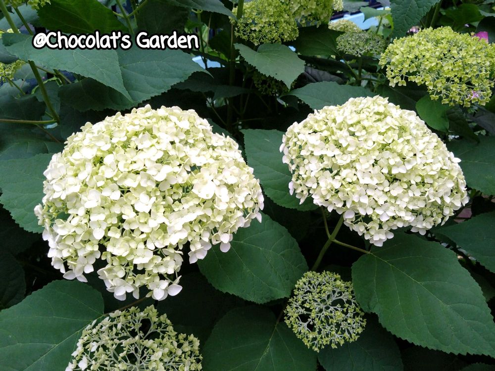 ⑤アナベルがそろそろグリーンからホワイトになってきました💚🤍
