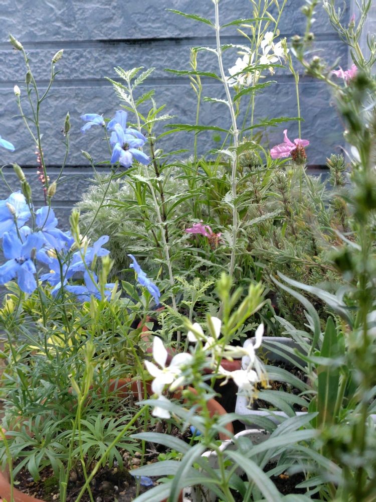 盛夏の涼し気なバルコニーをイメージして、今年は真っ白いガウラ,サルビア・アズレア,サルビア・ボックセージを迎えました🤍🩵💙🌿