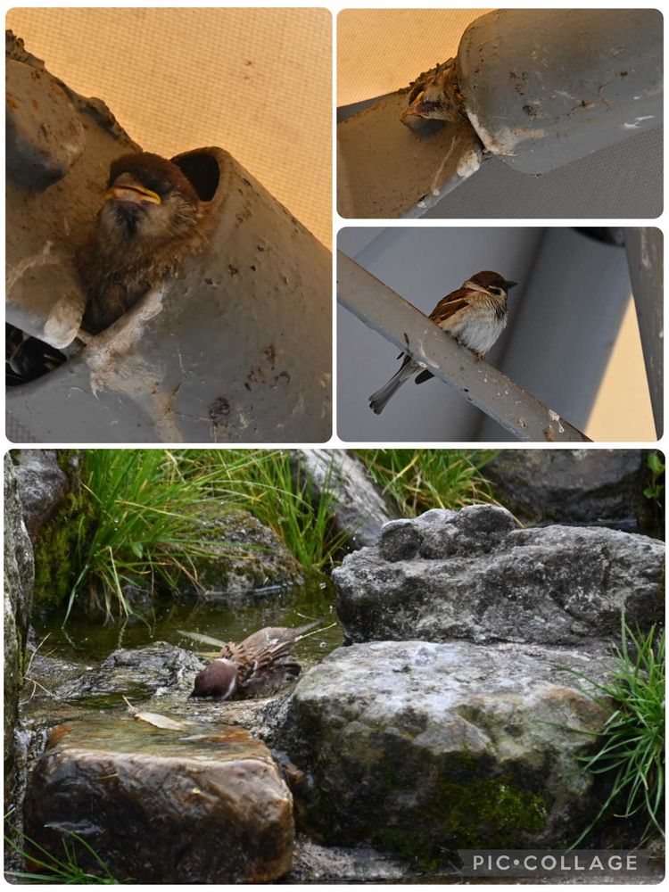 頭の上からピーピー聞こえて、ツバメかなと思ったらスズメさんでした!