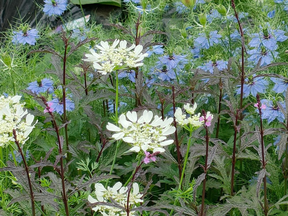 ニゲラとオルレアと宿根バーベナ。仲良く咲いています。