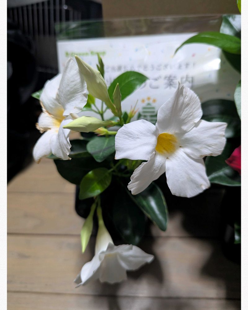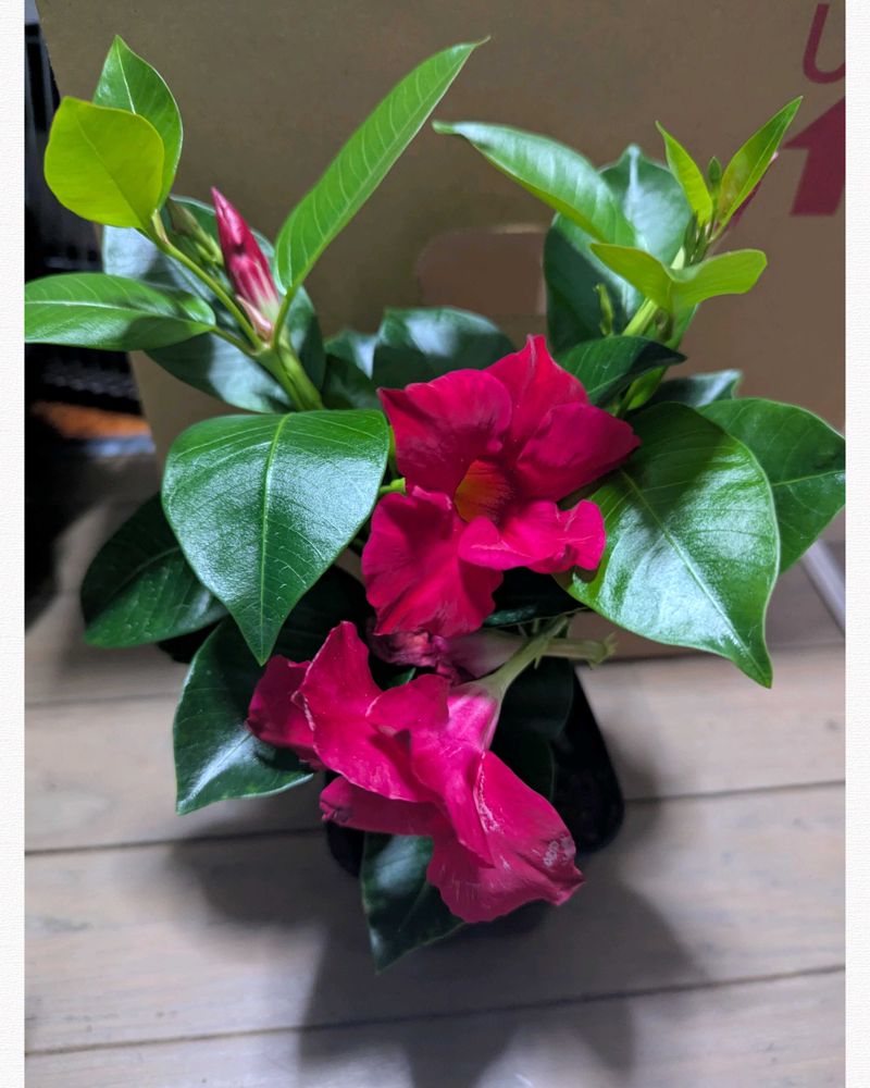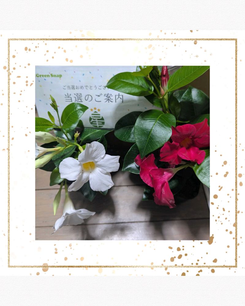 マンデビラ=グリーンカーテン💚と思い応募してみたら…この品種はツルが伸びないそうなので寄せ植えにチャレンジしてみようかと思います!