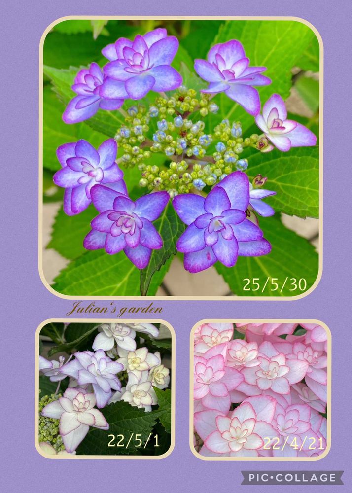 ほんとに色変がいろいろで昨年と今年は似てるからそろそろこの色で落ち着くかなと🤔植え替えする時に土をアルカリ性にすれば変わるかなと😅