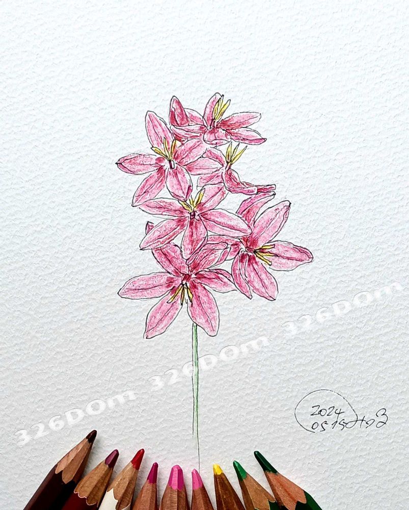 イキシアの華やいだお花の感じが素敵です。細い茎の特徴もとても良いと思います。色鉛筆の使い方も楽しみの一つになりました😊