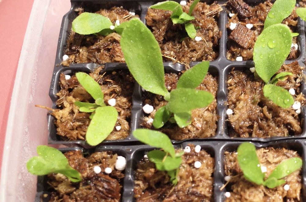 ゴールデンボーイ(金童)の胞子培養株を植え替えました。今からの時期なら元気に根をはってくれると思います😊♪肥料は控えめに細胞壁の密度の高い丈夫な株にしたいです💕頑張ります!