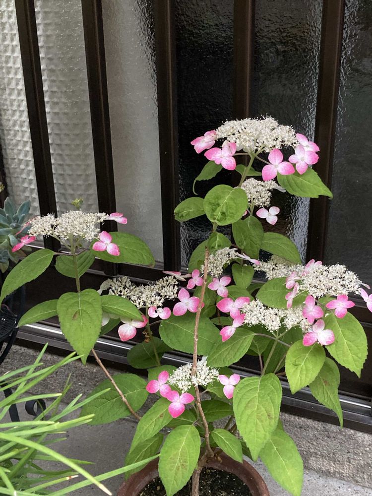こちらの山紫陽花は紅でしょうか?もしそうならお揃いです😊段々と色づく所がカワイイですよね😍