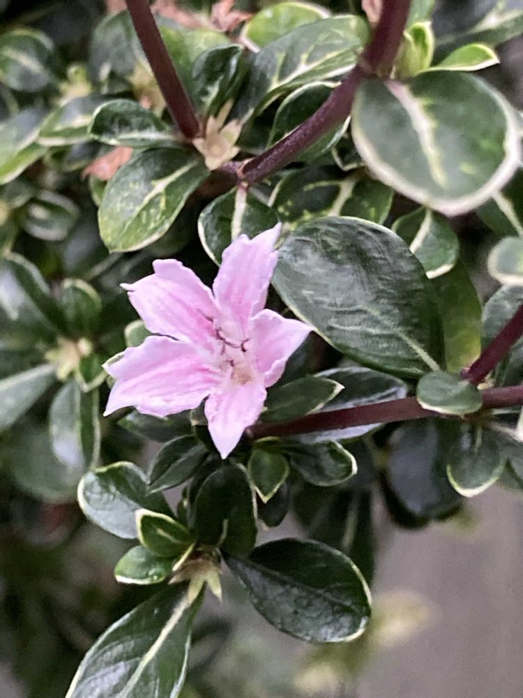 No.713 散歩道の植物とお散歩ちゃん12月①2025/1218白侘助、ビワ、オキザリスバーシカラー・・・