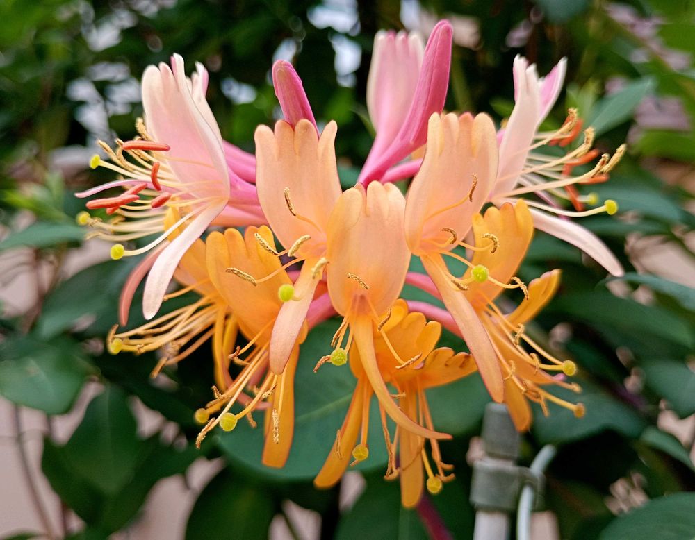 スイカズラ、何より耐寒を気にするのですが❄ 切り戻し〜冬越しで ツルは1.5mを超える程に😲 大っきな方は10輪超えの花をつけましたよ〜🥰 意外と強いんだなぁ〜っていうのが実感です👌