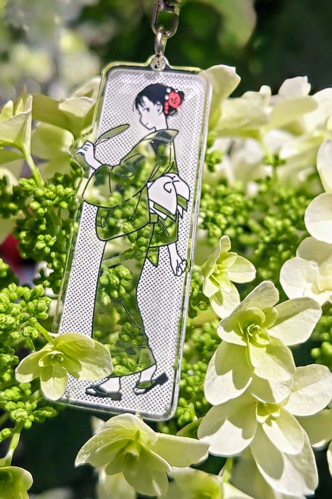 アクリルホルダーのお散歩ちゃん。思いがけない着せ替えでクスッと笑えたり、セクシーになったり。 そんな世界を共有したいな。