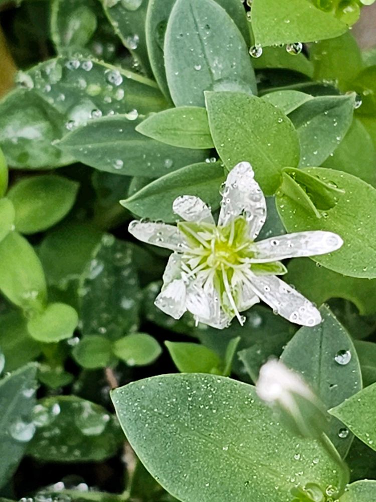 シコタンハコベ雨に打たれて可哀想とおもってたら
