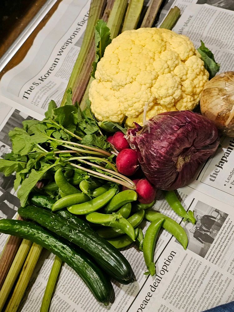 キュウリ🥒、赤カブ、紫タマネギ🧅は、サラダ🥗に、