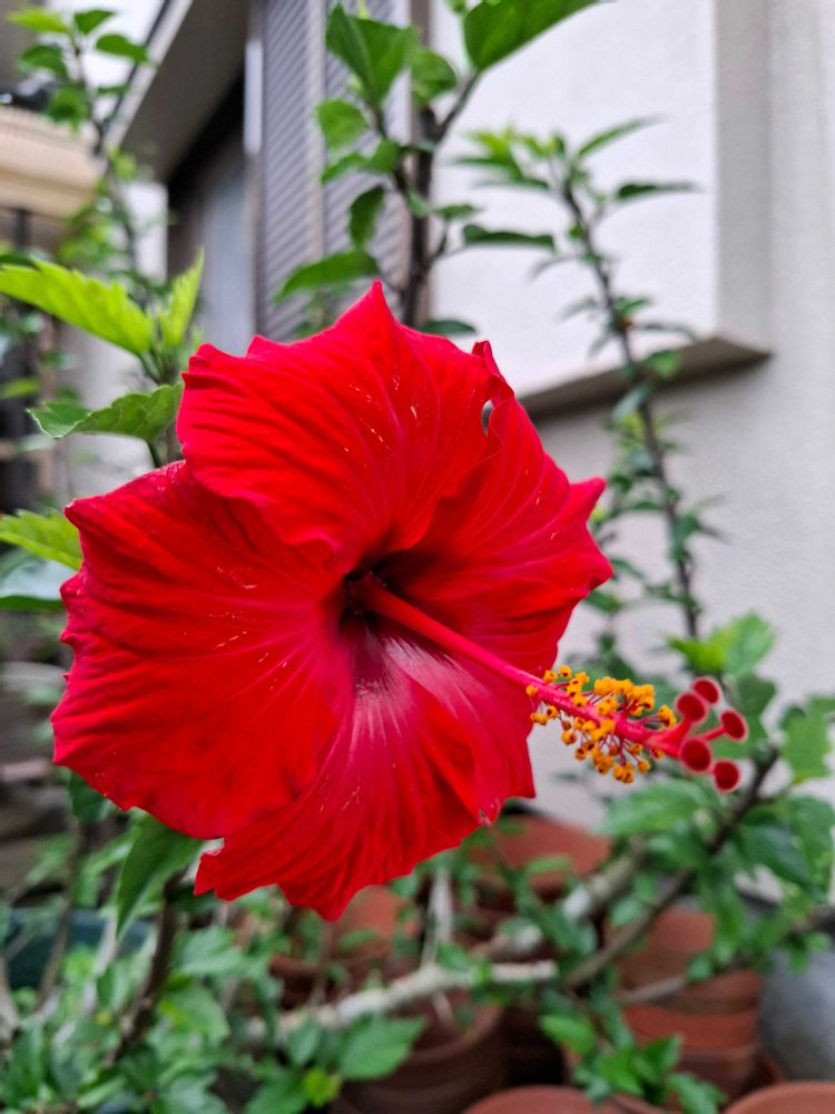 鉢植えのハイビスカス🌺なので、庭植えにしようか思案中です🤗
