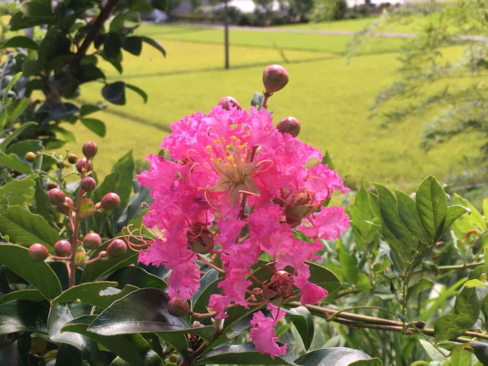 サルスベリは青空だけじゃなくて、🌾の黄色ともマッチするんだね😊💕