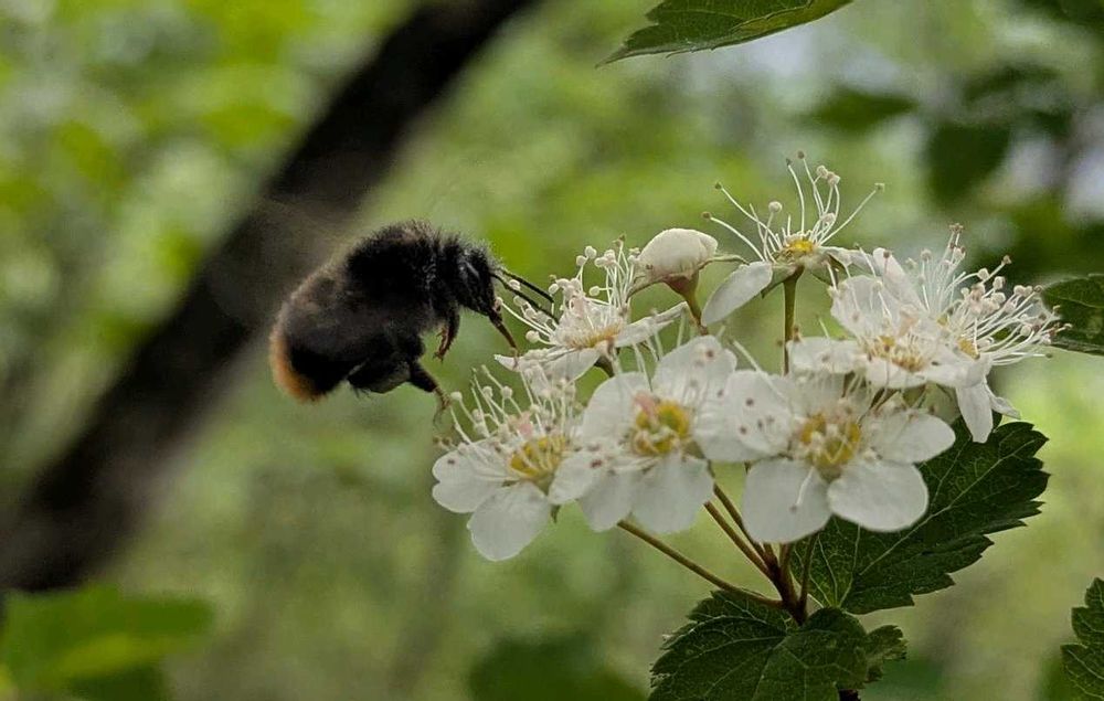 アズキナシかな〜いやミヤマザクラですね〜。せっせと蜜集め。