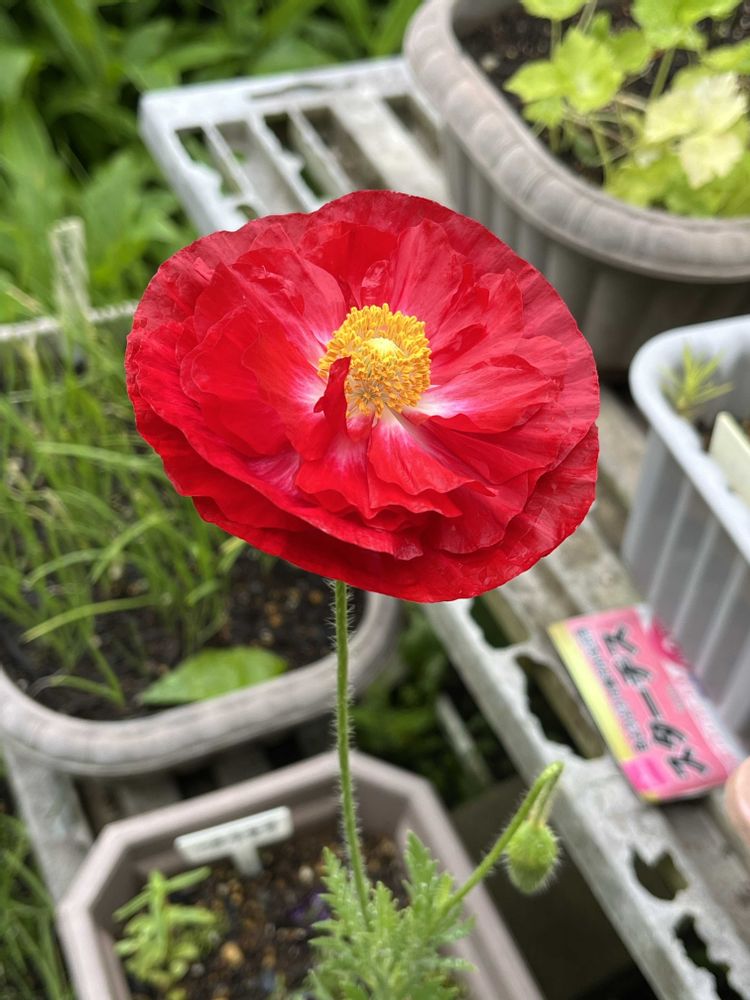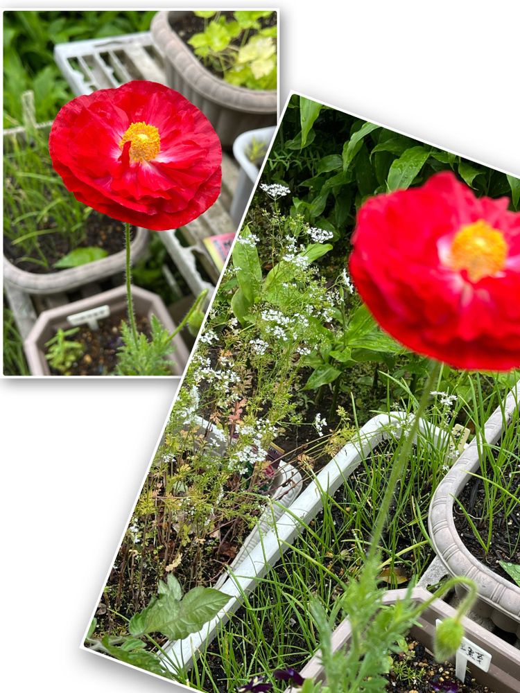 赤い花は、ポピーの様な…。🥰 つりがね草も可愛いですね。マリーゴールドも、種からですか❔