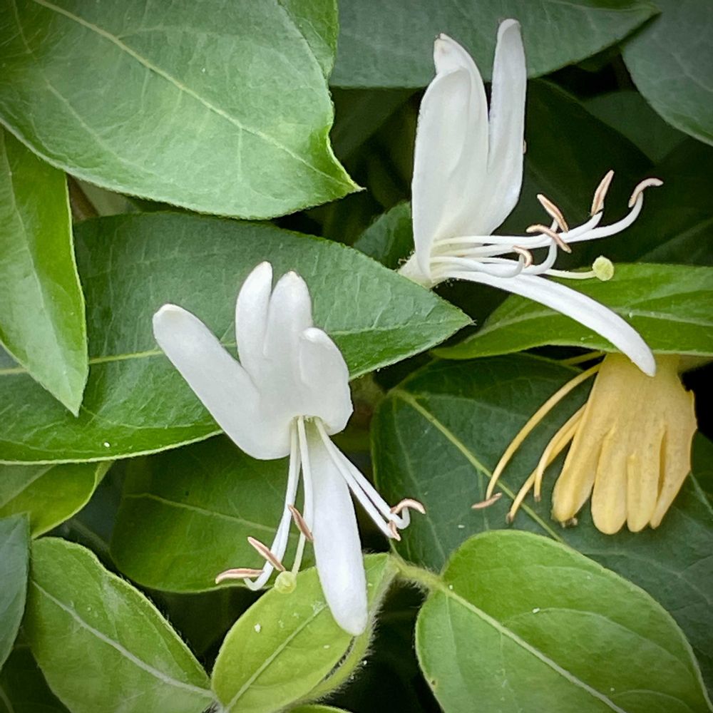 この写真は、お出かけ先でたまたま見かけたスイカズラ✨🤍💛🌿🎶
